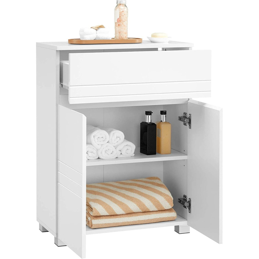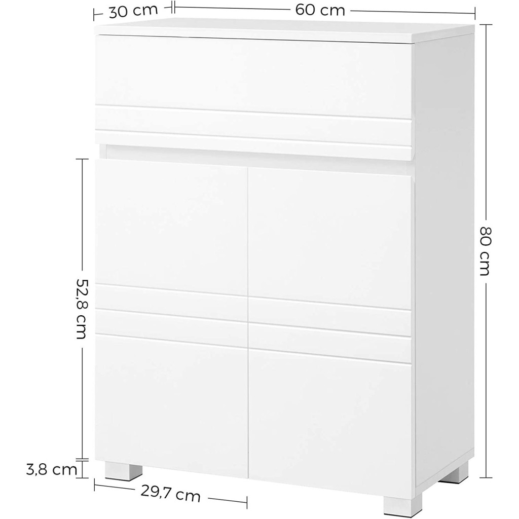 Minden szobában ragyog: A fényes fehér ajtóknak a finom vonalbarázdákkal és a matt fehér szekrénynek köszönhetően ez a padlószekrény, amelyet a VASAGLE tervezői alkottak, friss levegőt hoz a fürdőszobájába, konyhájába, dolgozószobájába vagy bármely szobába, amelynek szüksége van rá.