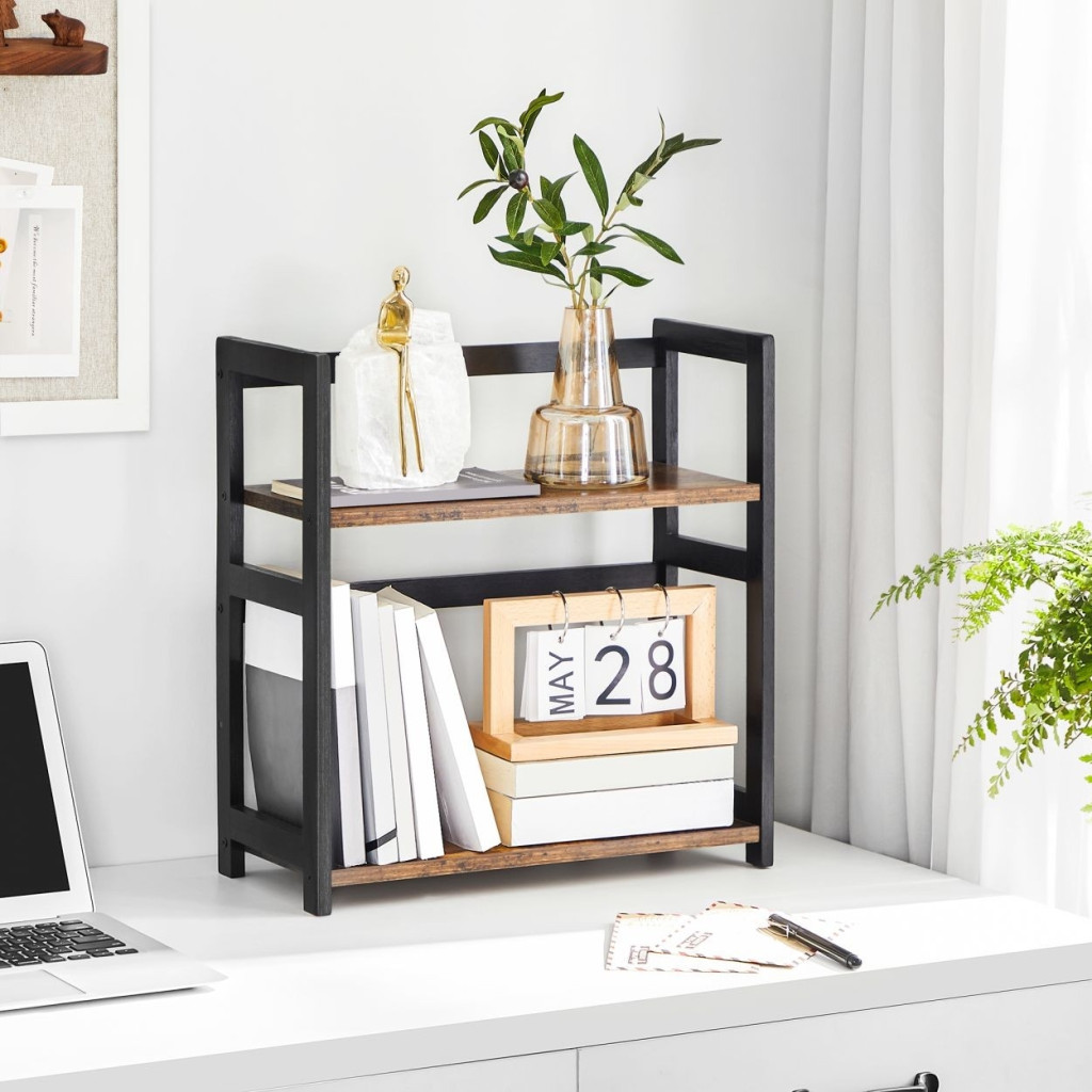 Ízekkel Teli: Cukor az édeshez, ecet a savanyúhoz, só a sós ízekhez...várj, van még egy. A gazdag faerezetű és fekete keretes 2 polccal ez a pultpolc maga is bájos, rusztikus ízt sugároz.